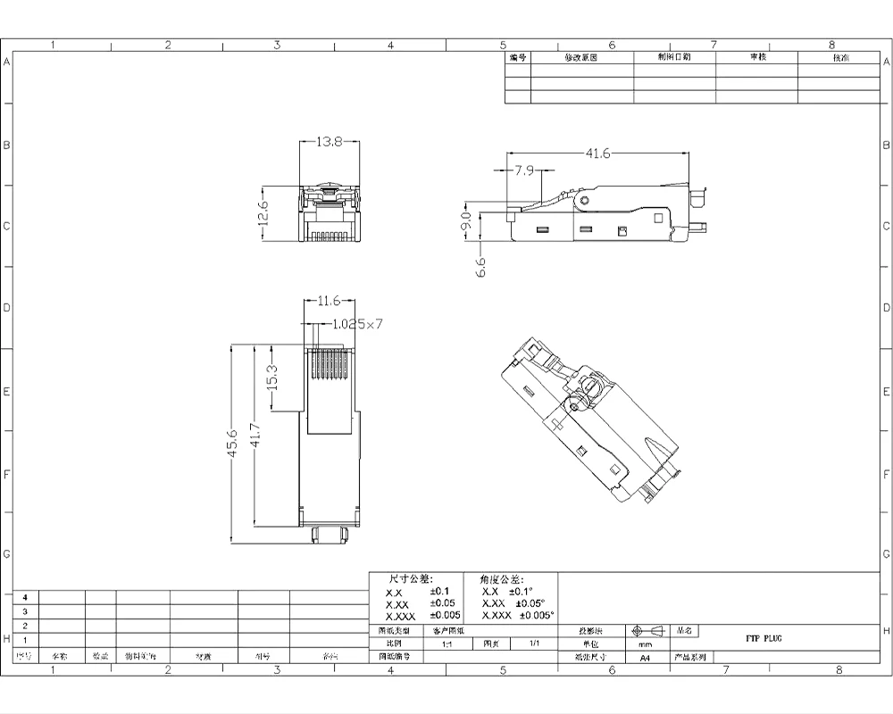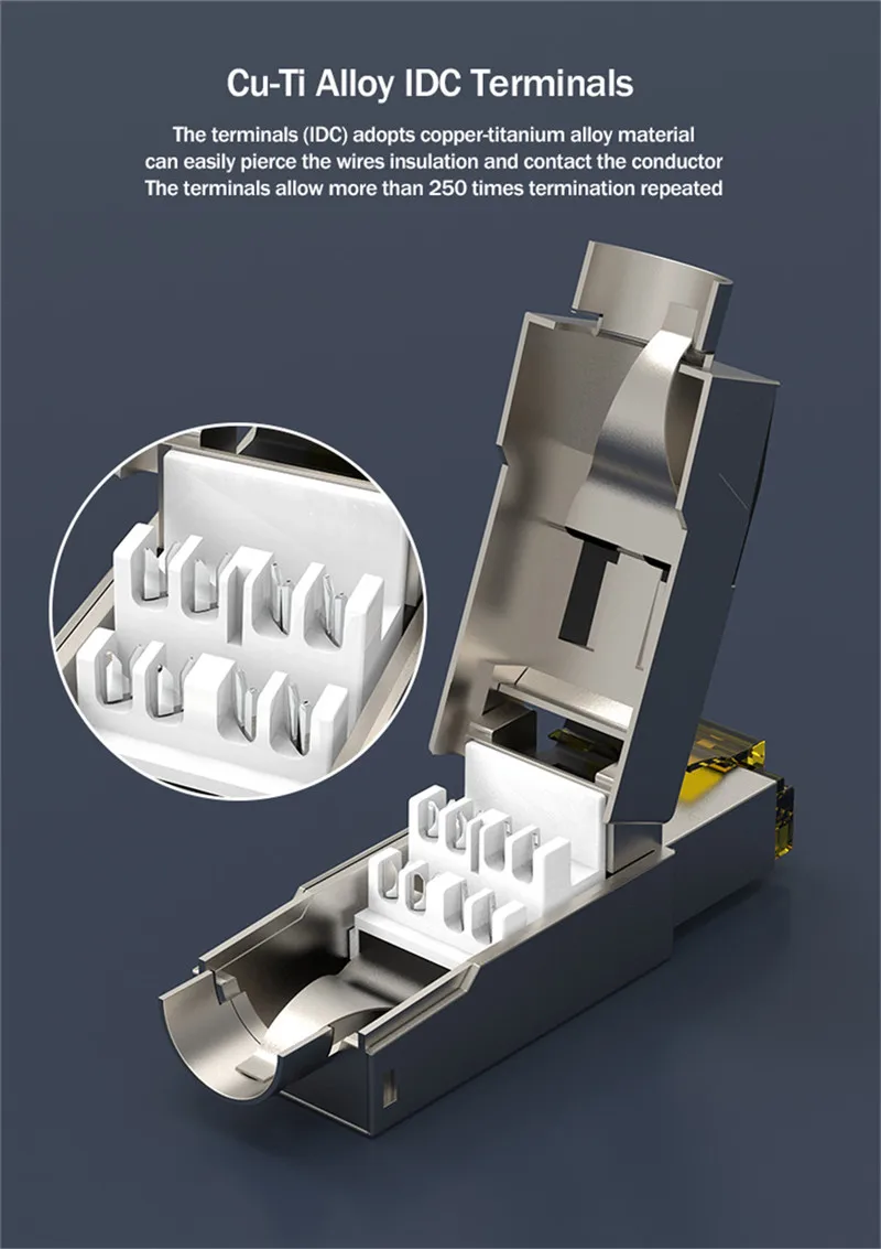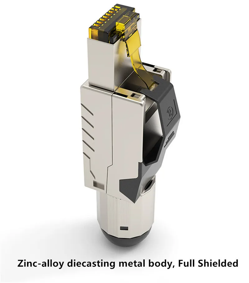1. Nombre del producto:Conector RJ45 de aleación de zinc DIY Cat6A/Cat7/Cat8 enchufe