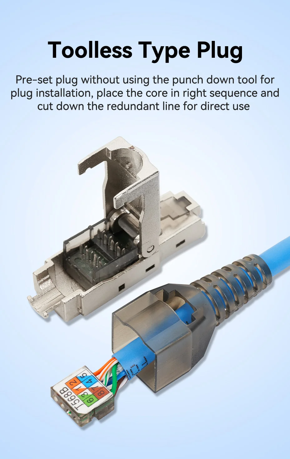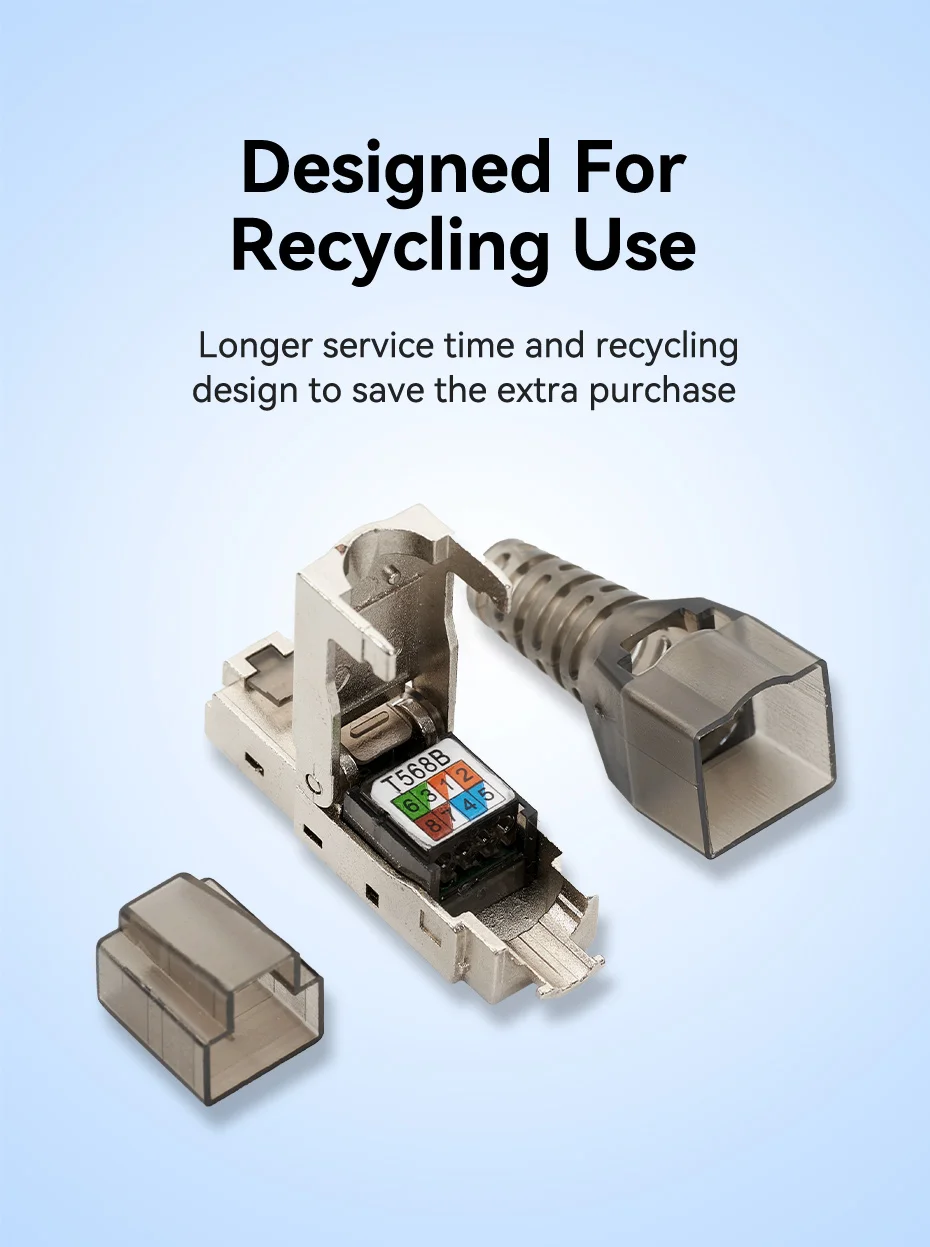 Este producto se divide en tres tipos de conectores con las mismas funciones, pero los calibres de cable aplicables son diferentes, a saber, CAT6 cat6a cat7 cat8. Selecciona diferentes conectores según tus necesidades. Este conector se puede reutilizar.