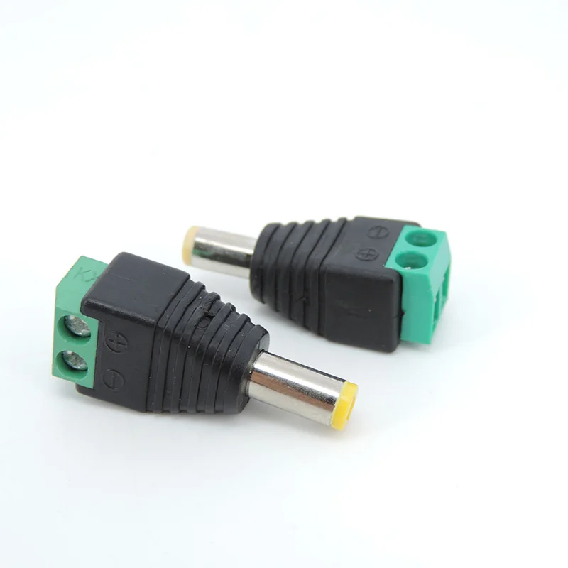 Conector macho de clavija de alimentación CC, 2,1 mm x 5,5 mm, 5,5 x 2,1 mm, 5,5 x 2,1 mm, adaptador de enchufe CC amarillo para CCTV, 12 V, 24 V CC macho