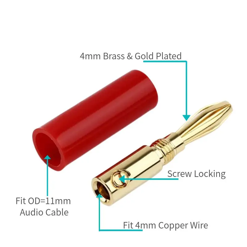 Comprar Conector de clavija Banana de 4mm, Conector de Audio macho, Terminal de altavoz, Conector chapado en oro, Cable Musical DIY, electrónica de consumo negra y roja