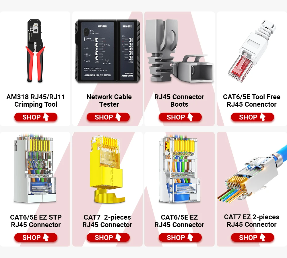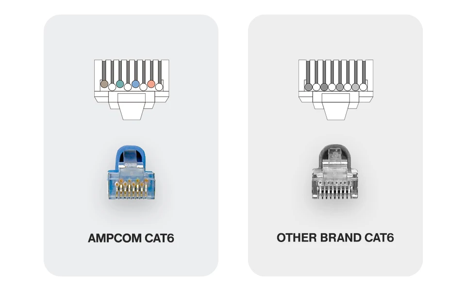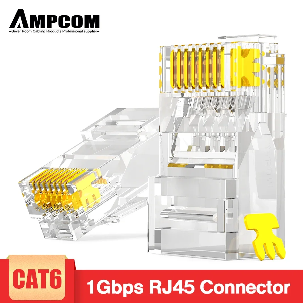 Comprar Conector de clavija Modular AMPCOM CAT6 RJ45 UTP 30/50U extremo de engarzado 8P8C chapado en oro para Cable Ethernet, conector de Cable Ethernet a granel