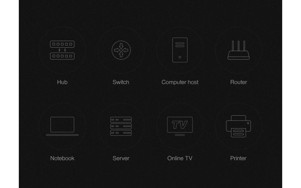 Adecuado para cables CAT6/5E/5 y compatible con POE; Se utiliza para CCTV, enrutadores, conmutadores, impresoras, concentradores, PC y servidores.