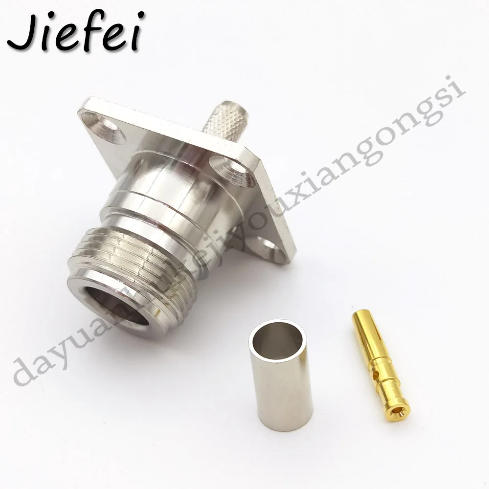 Comprar Conector coaxial de engarce RG58, RG142, RG400, LMR195, 4 agujeros, montaje en panel niquelado, 10-50 piezas, venta al por mayor, nuevo
