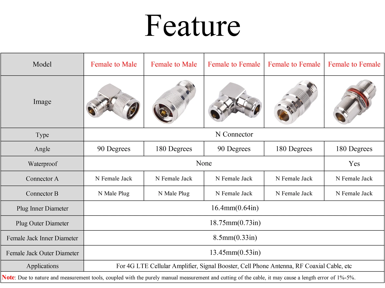 Comprar Conector Coaxial RF N hembra a macho/adaptador Jack hembra, uso en ángulo recto para antena repetidora de TV, resistente al agua, 5 uds.