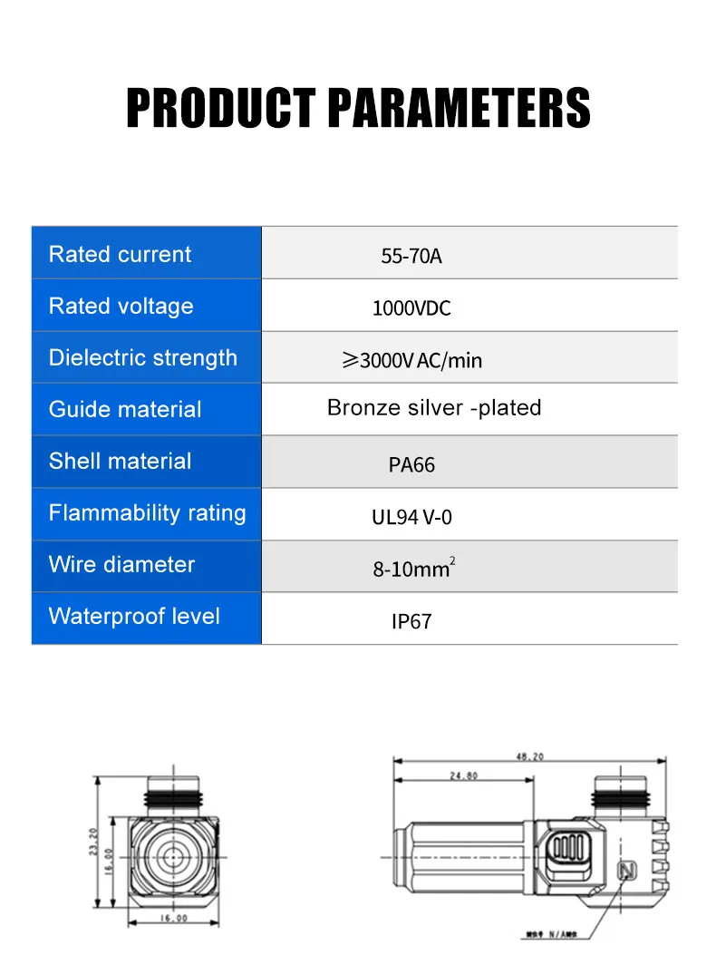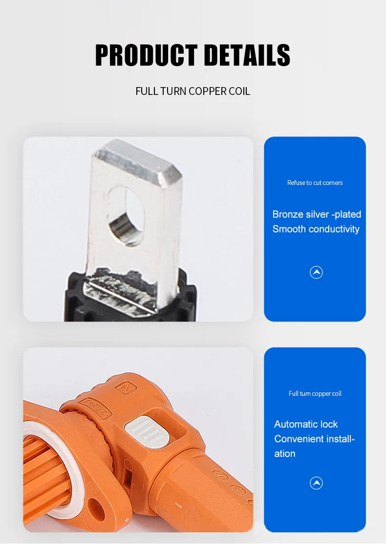 Conector de cobre puro 60A a prueba de agua a través de la pared Terminal de almacenamiento de energía de alta corriente Batería de litio Enchufe fotovoltaico