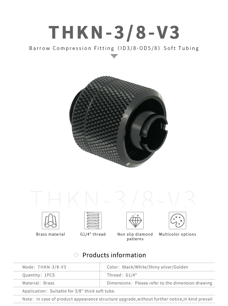 Conector de compresión de tubo Flexible, accesorio de manguera de Barrow de 3/8 pulgadas de grosor, 9,5x15,9mm, ajuste manual, dorado, plateado, negro, THKN-3/8-V3