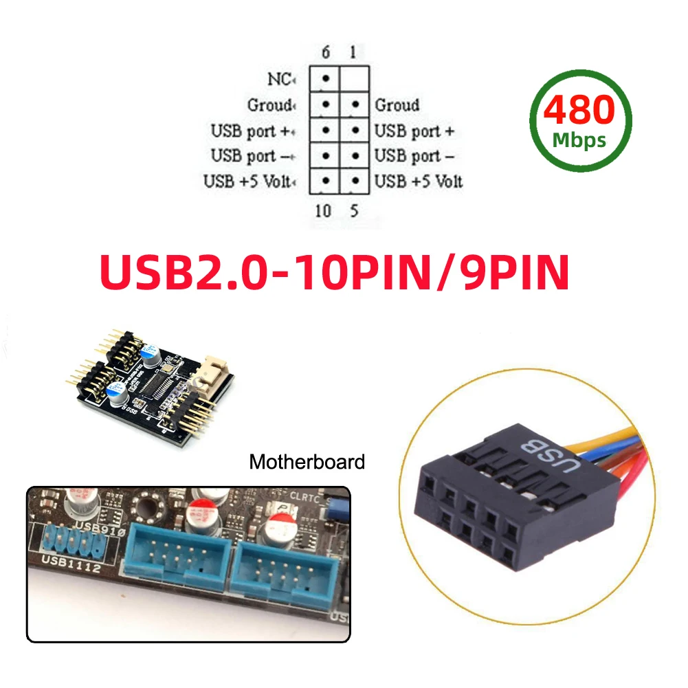 Escritorio 9 pines USB HUB USB 2,0 Conector de 9 pines Adaptador Puerto Multilier