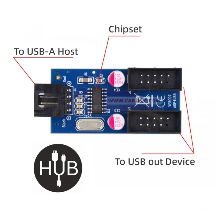 Chipset USB2.0 HUB en el interior y admite velocidad de 480Mbps.