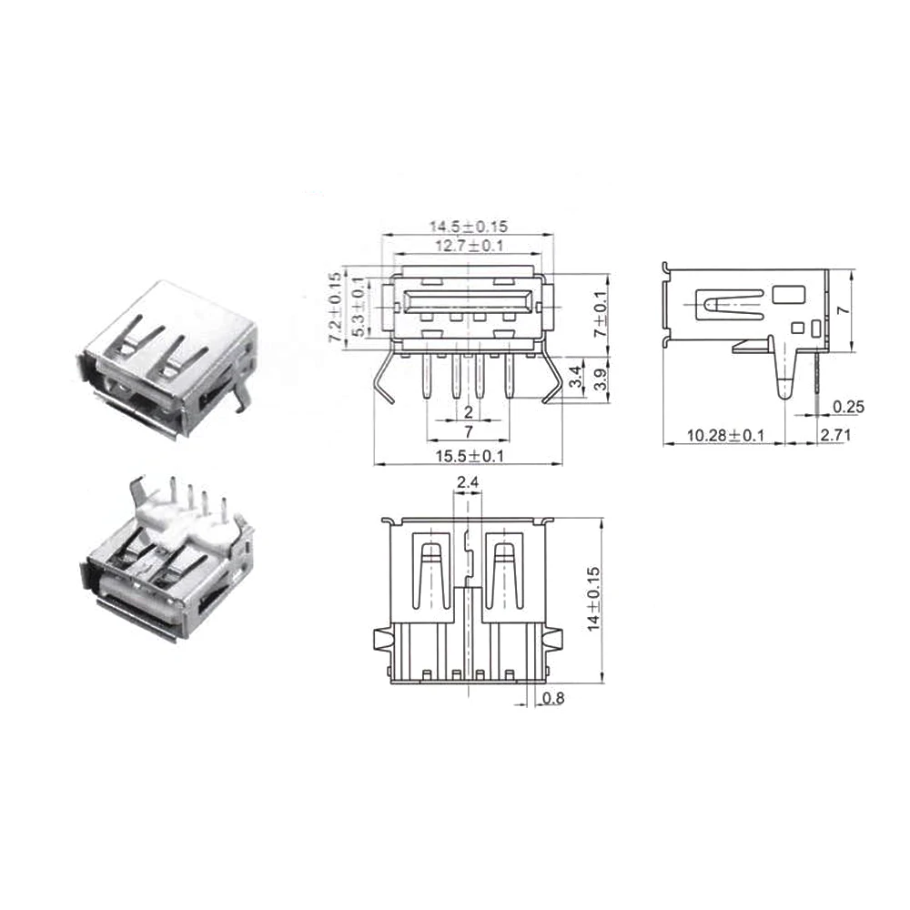 Comprar Conector de conectores de soldadura hembra, puerto estándar USB tipo A, USB-A de enchufe PCB, 10 Uds.