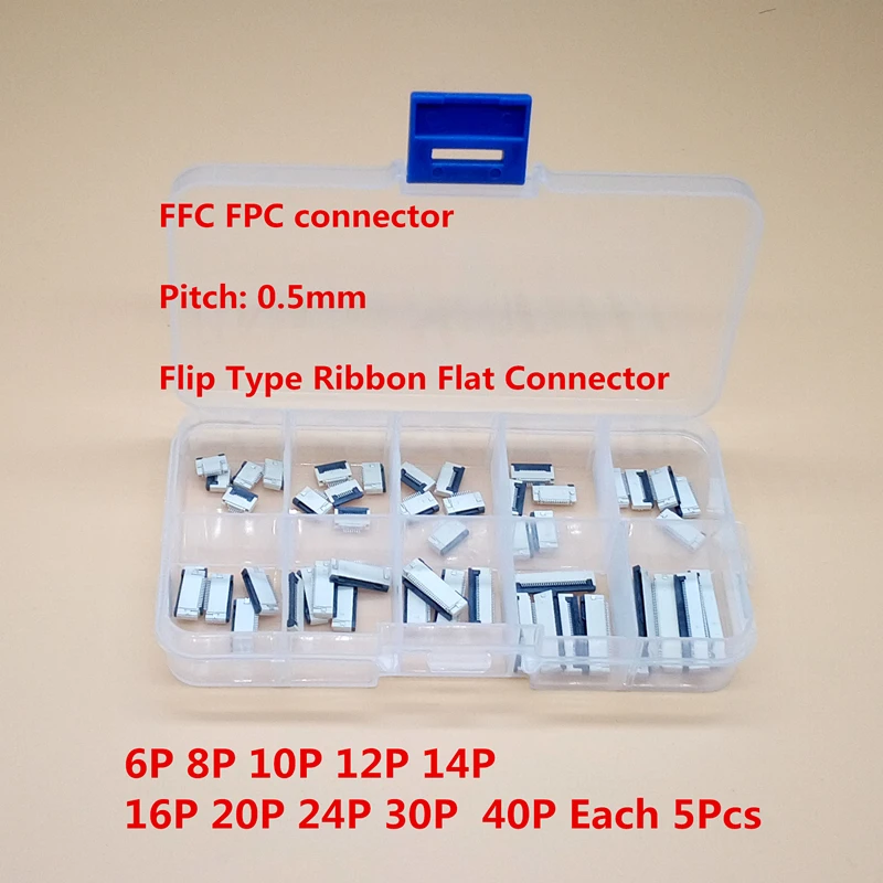 50 Uds. Tipo de contacto inferior de la carcasa 0,5mm conector FFC FPC 6/8/10/12/14/16/20/24/30/40 Pin