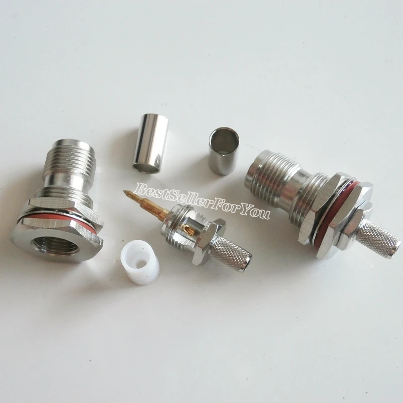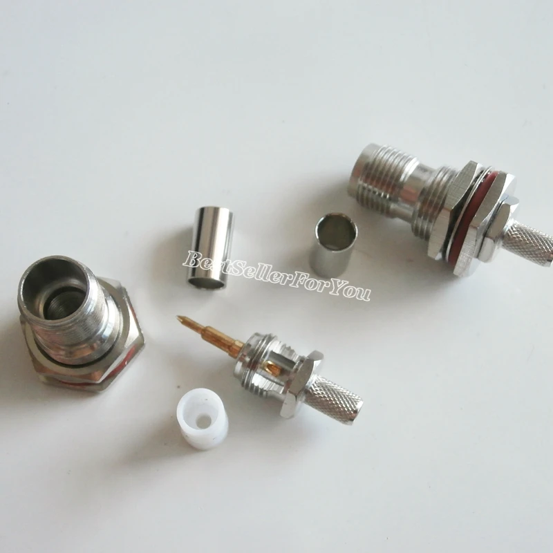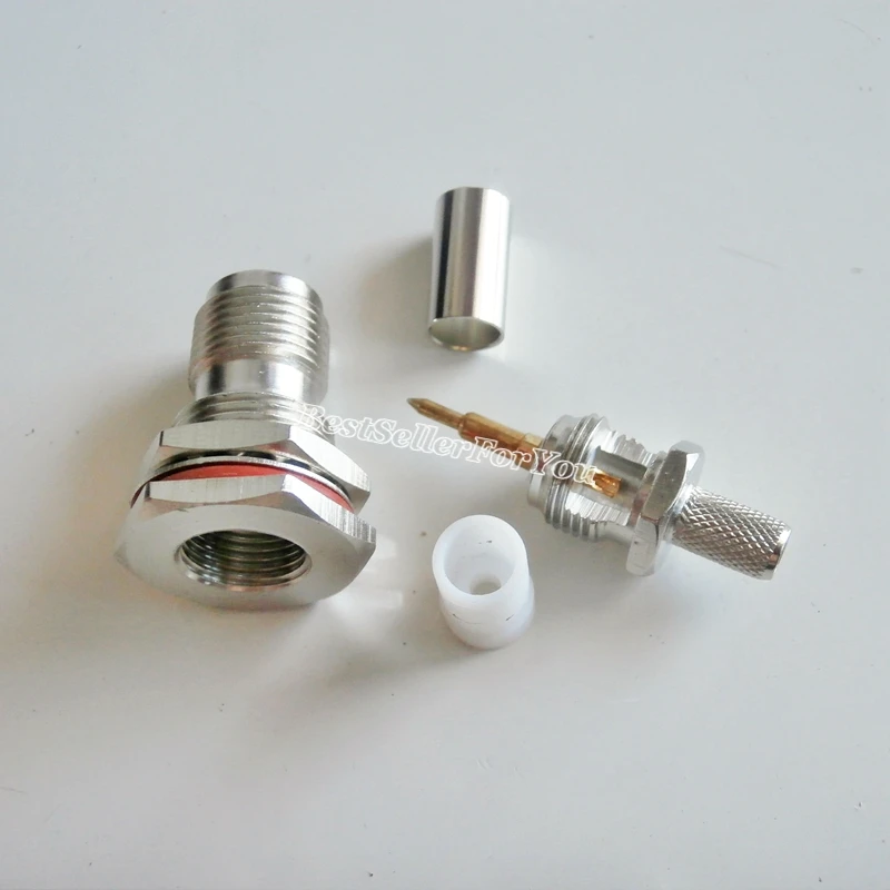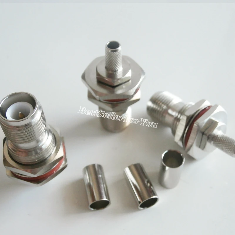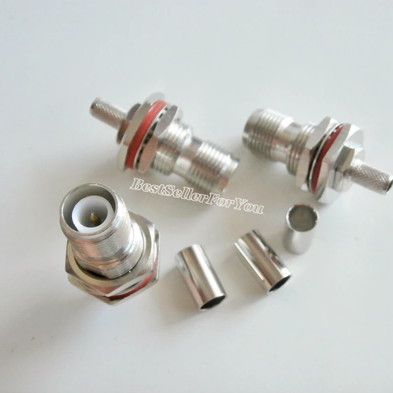 Comprar Conector de crimpado de mampara hembra, Conector recto de Cable, 1 RP-TNC, RG58, RG142, LMR195, RG400