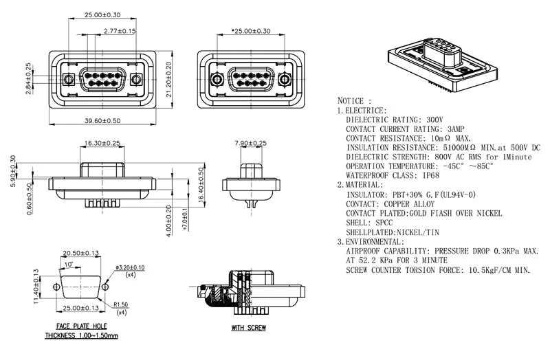 Comprar Conector de D-SUB DB9 DB15, 9Pin, 15Pin, resistente al agua IP68, RS232 485, soldadura tipo D, Latón chapado en oro 3U