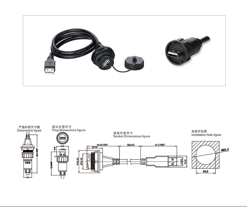 Comprar Conector de datos a prueba de agua USB2.0, con montaje en panel, impermeable, macho y hembra, enchufe de aviación, cable de extensión USB