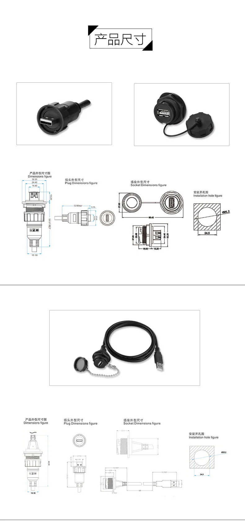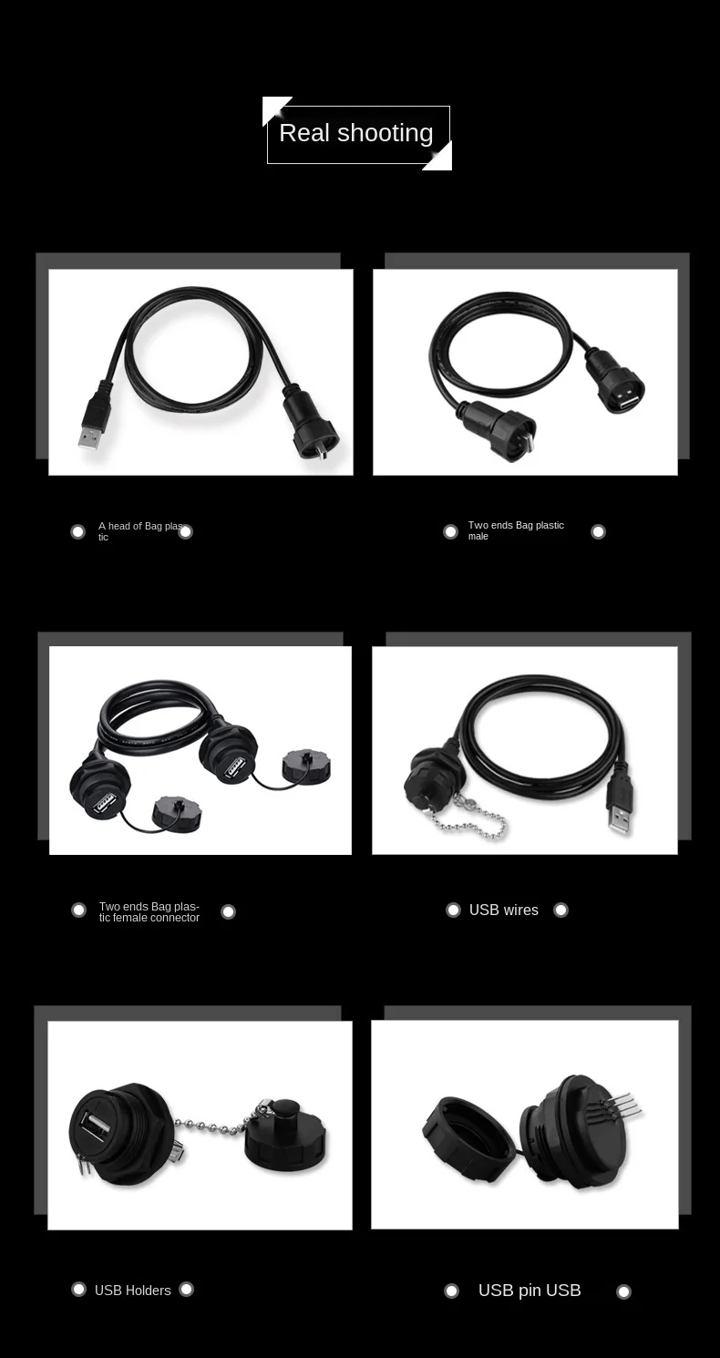Ampliamente utilizado en: ordenadores, cámaras digitales, escáneres y otros equipos de transmisión. Varios tipos, puede lograr un acoplamiento de conversión macho y hembra, hembra independiente, macho con cable, etc.