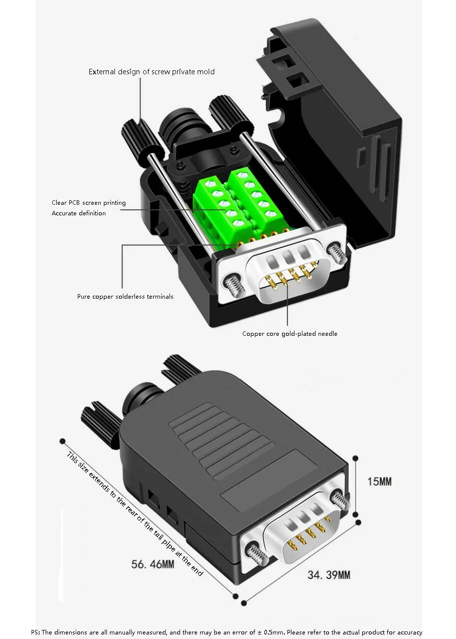 Comprar Conector DB9 D-SUB 9 pines macho hembra sin soldadura serie AWG adaptador de cable con carcasa enchufe rs485 terminal adaptador COM rs232