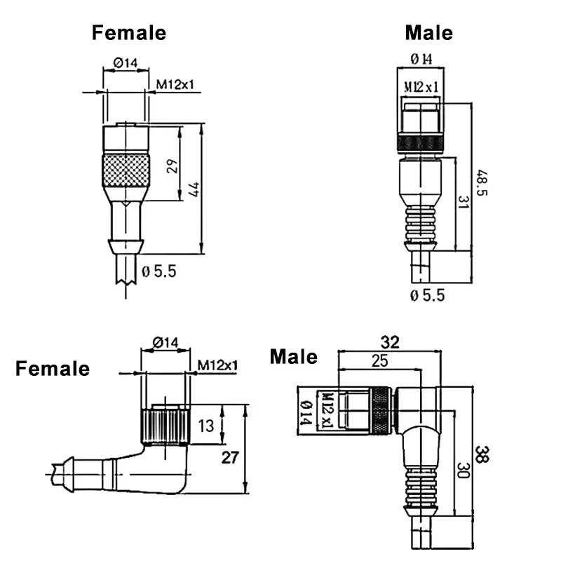 Comprar Conector de doble cabezal M12 de 2M, Cable de conexión de Sensor, codo 3 4 5 6 8 12 pines, enchufe de aviación macho a hembra, línea de extensión hembra