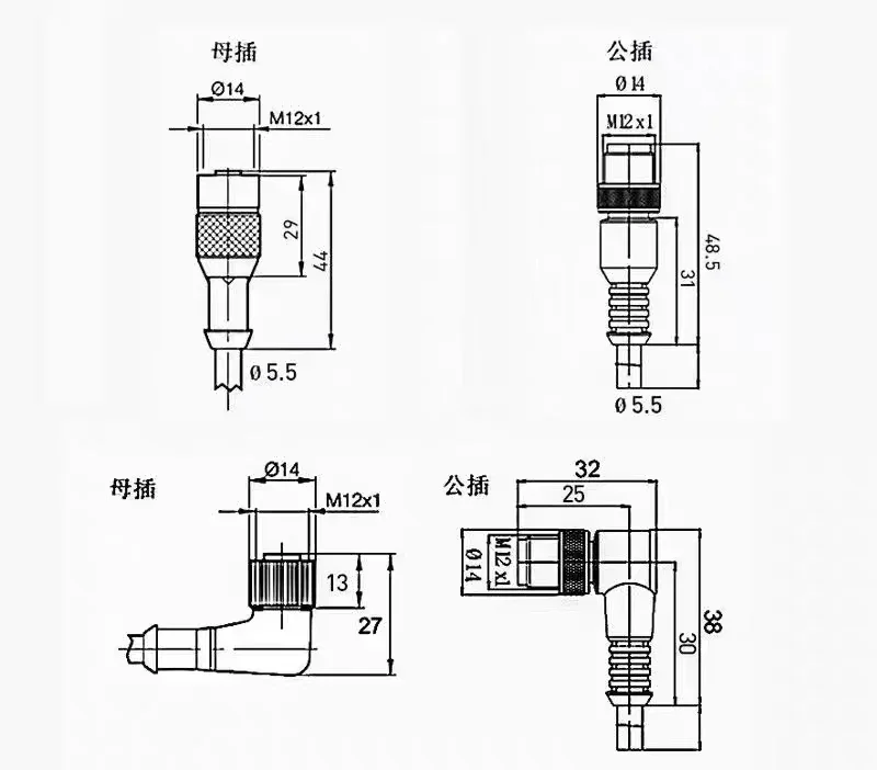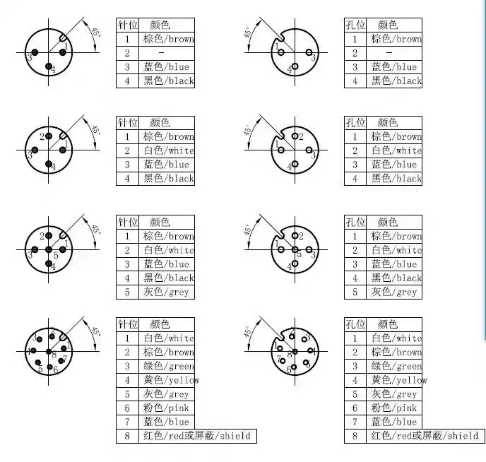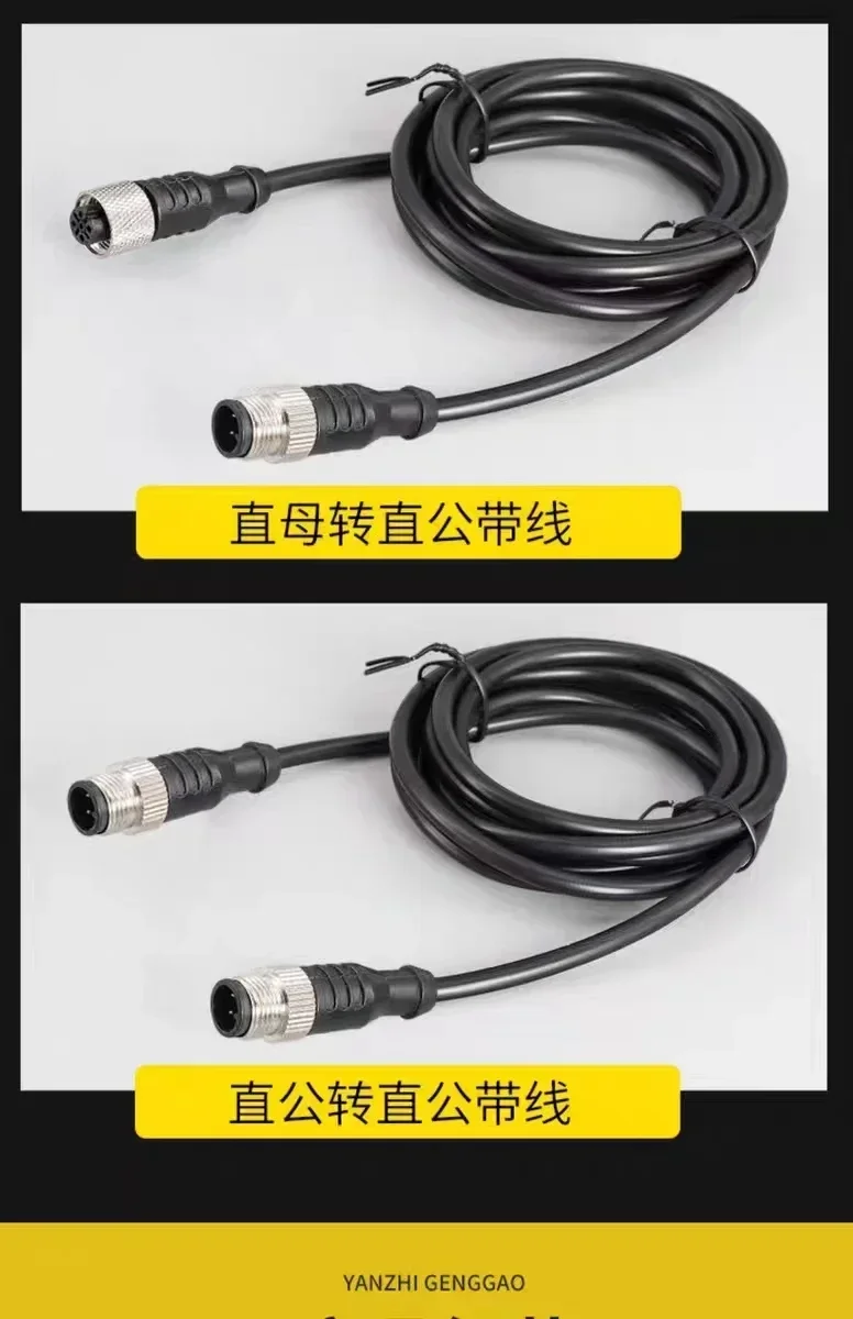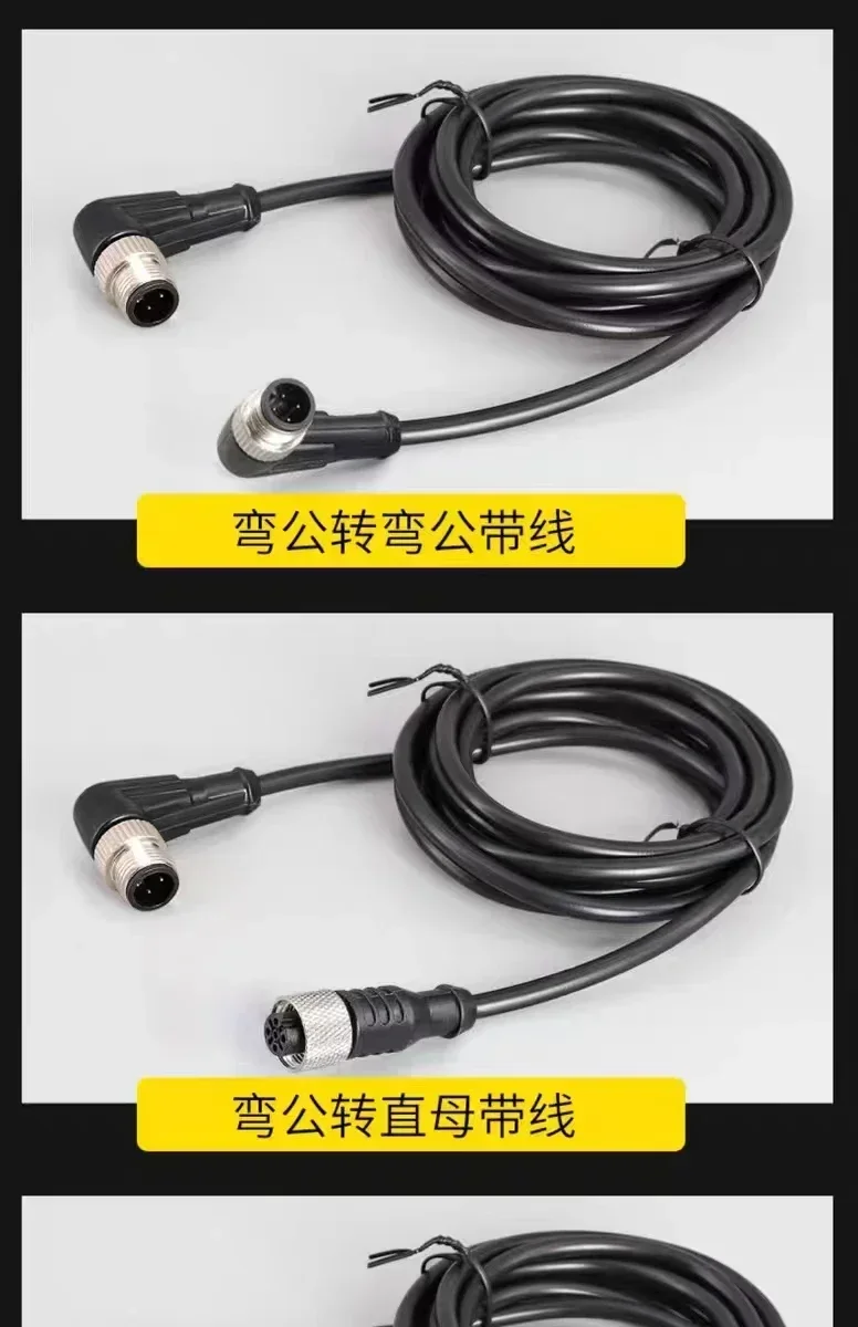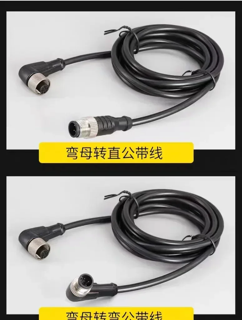 Conector de doble cabezal M12 de 2M, Cable de conexión de Sensor, codo 3 4 5 6 8 12 pines, enchufe de aviación macho a hembra, línea de extensión hembra