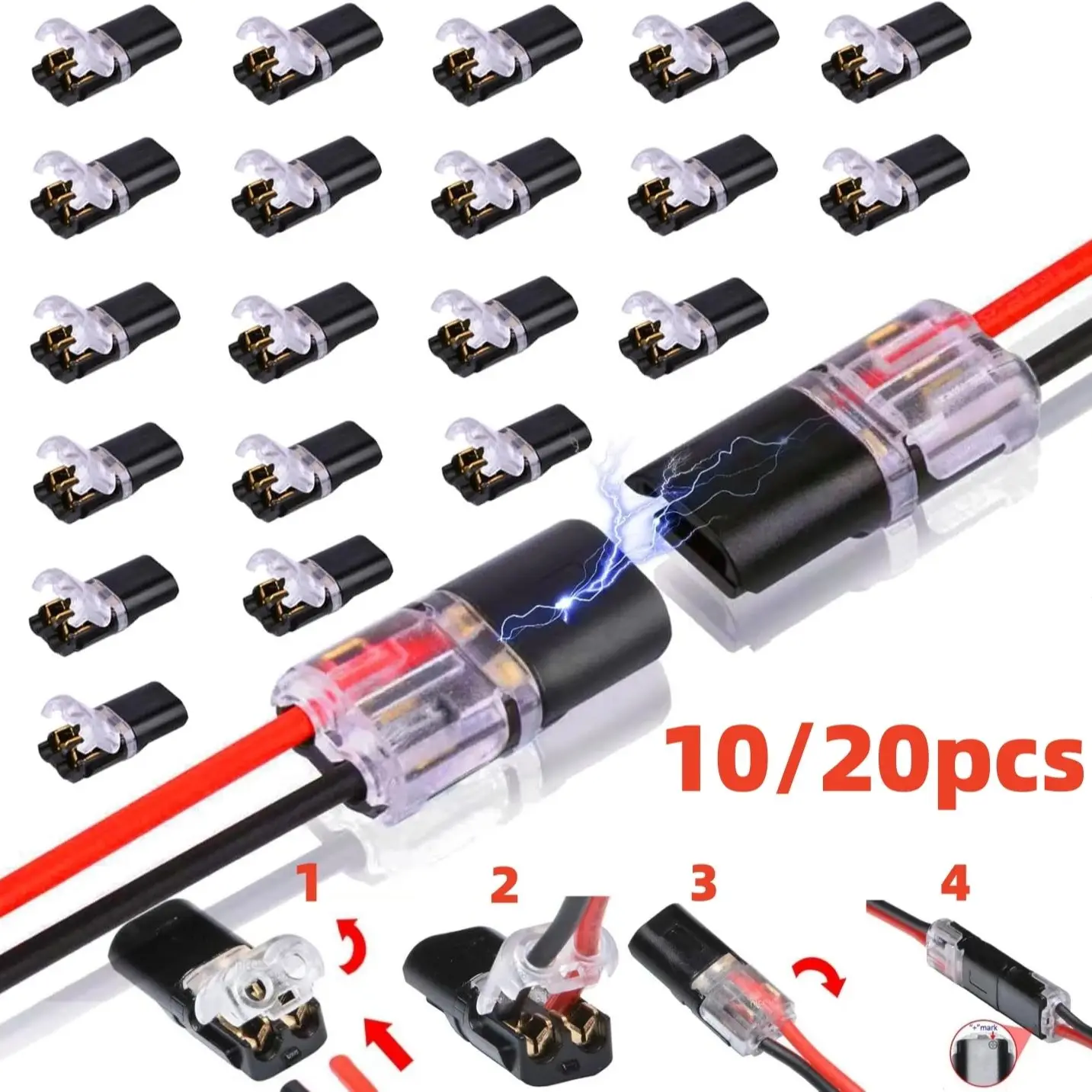 No requiere pelado de cables, los conectores eléctricos tienen un diseño de conexión de cierre innovador, lo que elimina el problema de pelado, bisagras y soldadura, solo necesita colocar los alimentos en estos conectores, muy fácil de usar.Es muy sencillo conectar dos cables como quieras.Ahorre tiempo y reduzca su error.