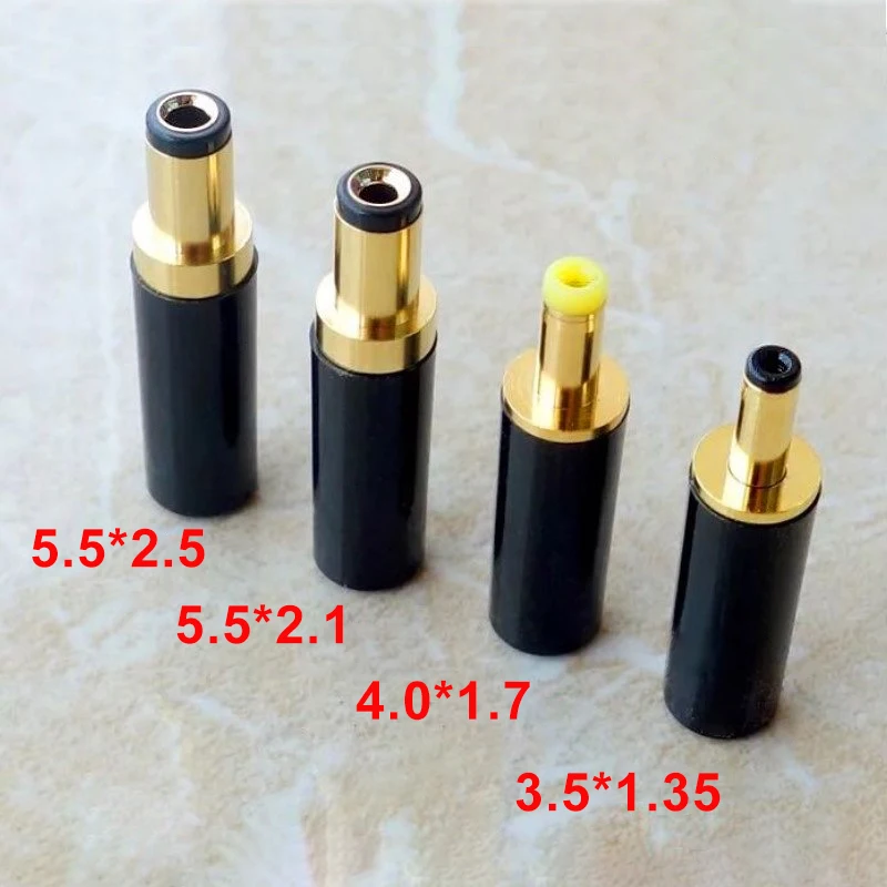 Comprar Conector de enchufe de alimentación CC chapado en oro, 1/2/5 piezas, 5,5x2,5/5,5x2,1/4,0x1,7/3,5x1,35mm, enchufe macho CC para línea de soldadura DIY