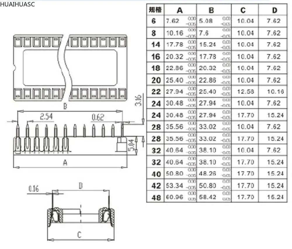Conector de enchufe cuadrado y ancho IC para soldadura por inmersión, 10 piezas, 2,54mm, paso 6P, 8P, 16P, 18P, 24P, 28P, 32P, 40P, 42P, 6/8/16/18/24/28/32/40/42P
