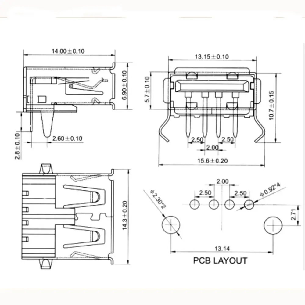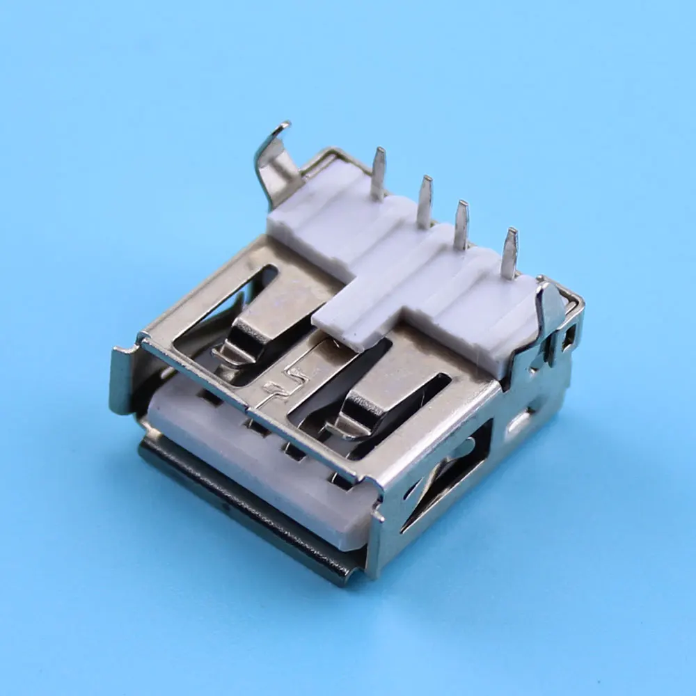 Conector hembra USB tipo A de 10 con rizador DIP2 4P AF 90 ° A tipo de interfaz toma de carga USB de 4 pines