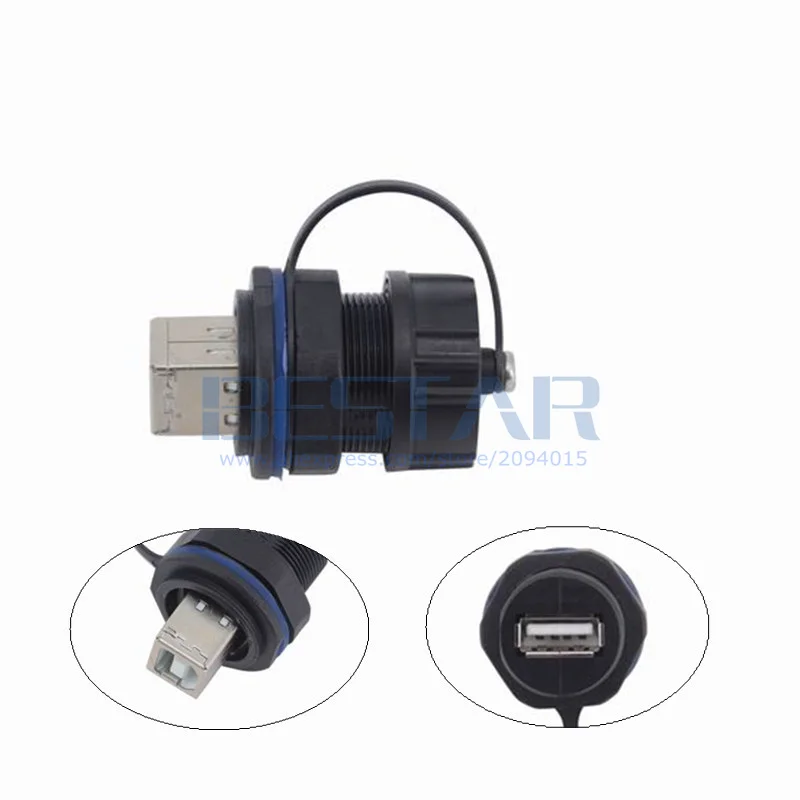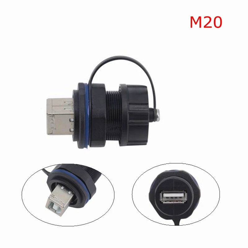 USB 2,0 enchufe impermeable Industrial tipo A hembra a tipo B hembra M20 M25 adaptador de escaneo de impresión conector de enchufe con tapa a prueba de polvo