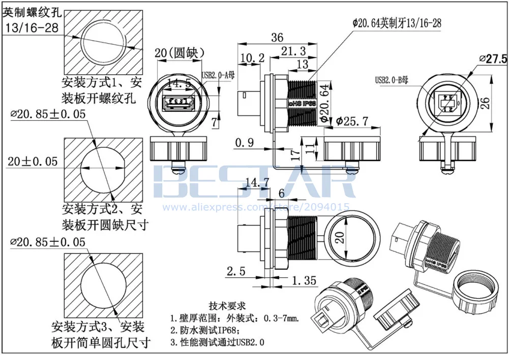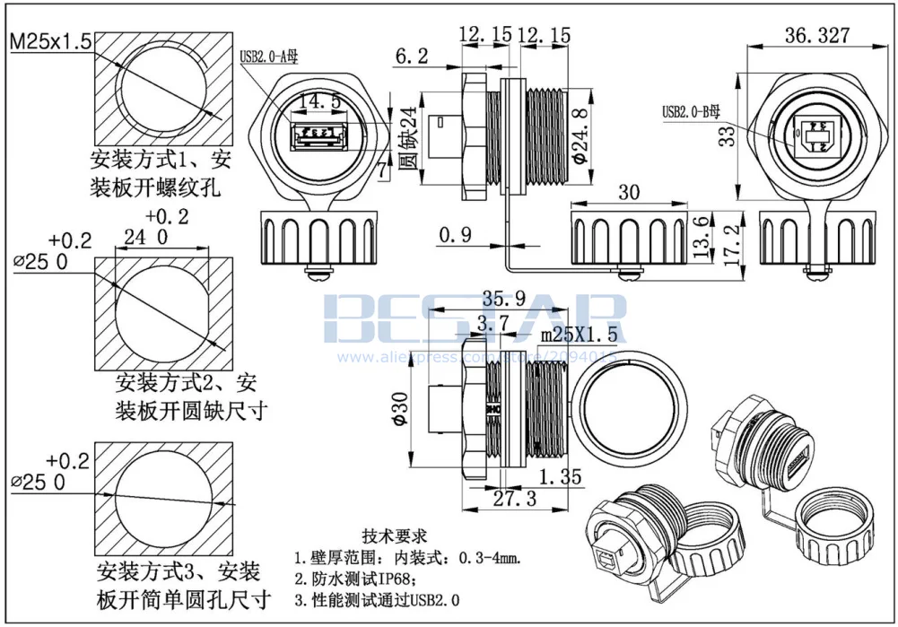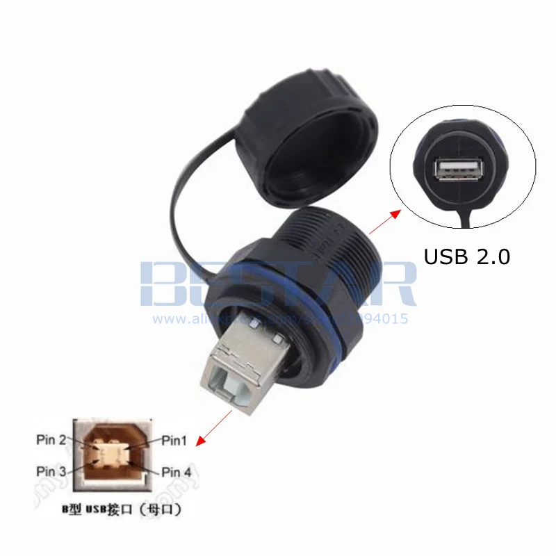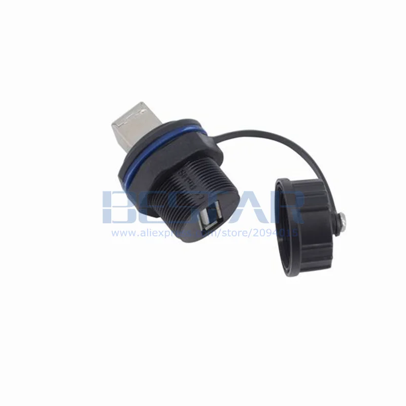 Comprar Conector de enchufe impermeable con tapa A prueba de polvo, adaptador de escaneo de impresión, USB 2,0, Industrial, tipo A, hembra A tipo B, hembra, M20, M25