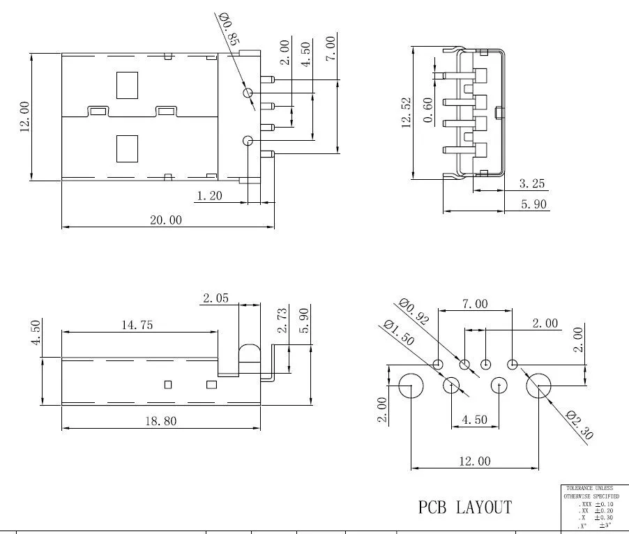Conector de enchufe macho tipo A USB 2,0 de 10 piezas USB AM 4 pines fregadero 1,2 DIP Cable soldadura
