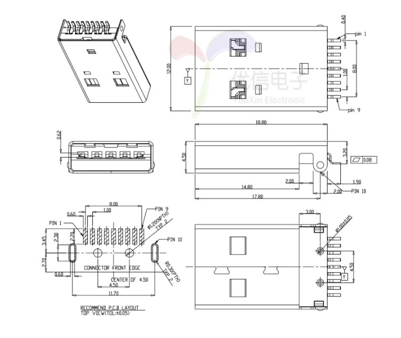 Conector de enchufe macho tipo A, conexión USB 3,0 de 5 piezas, 9 pines, SMT SMD, transmisión de datos de alta velocidad, conector USB 3,0, toma de carga para soldadura