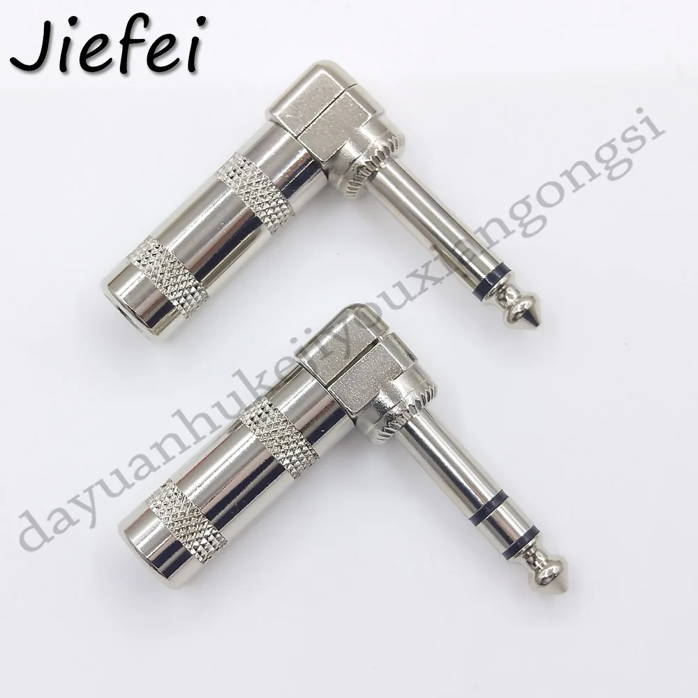 Comprar Conector de enchufe de micrófono Jack de latón de 6,35mm, montaje macho de ángulo recto de 6,3mm, conector de Audio monocromático/estéreo niquelado, 1 unidad