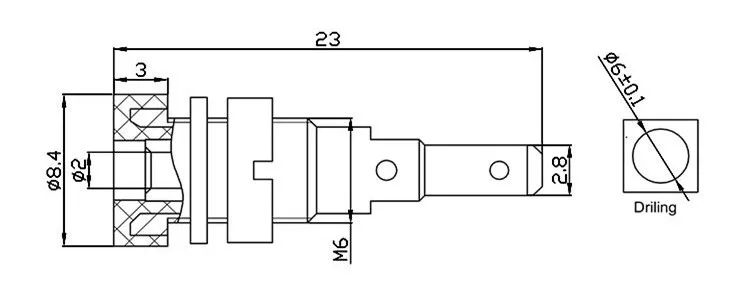 Tamaño de contacto (MM): 0,8x2,8 (2,8mm de ancho, 0,8mm de espesor, se puede utilizar para terminales de crimpado de 2,8mm)