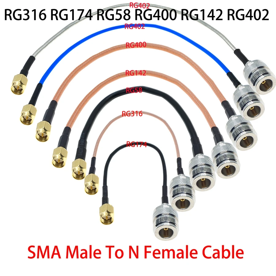 Comprar Conector de enchufe SMA macho a N hembra, Cable Coaxial RF, extensión de puente Pigtail, RG316, RG58, RG174, RG142, RG400, RG402, RG405