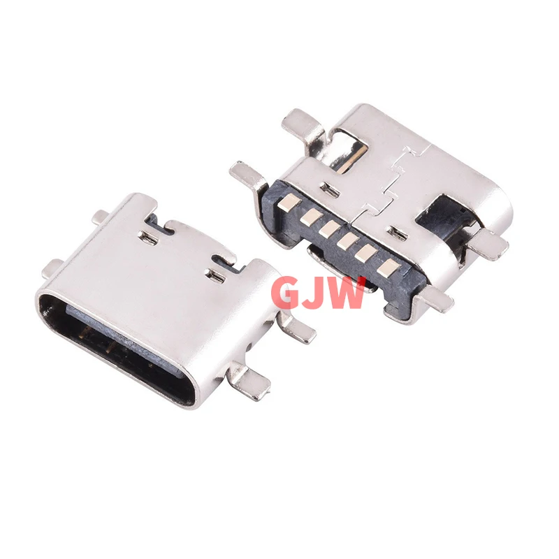 Conector de enchufe SMT de 6 pines, Micro USB tipo C 3,1, colocación hembra SMD para diseño de PCB, Conector de puerto de carga de alta corriente DIY, 5 uds.