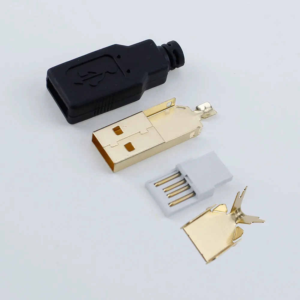 2 chapado en oro tipo A macho USB 4 pines enchufe conector DIY Alambre de soldadura tipo USB carga enchufe Kits cabeza conjunto de cuatro piezas