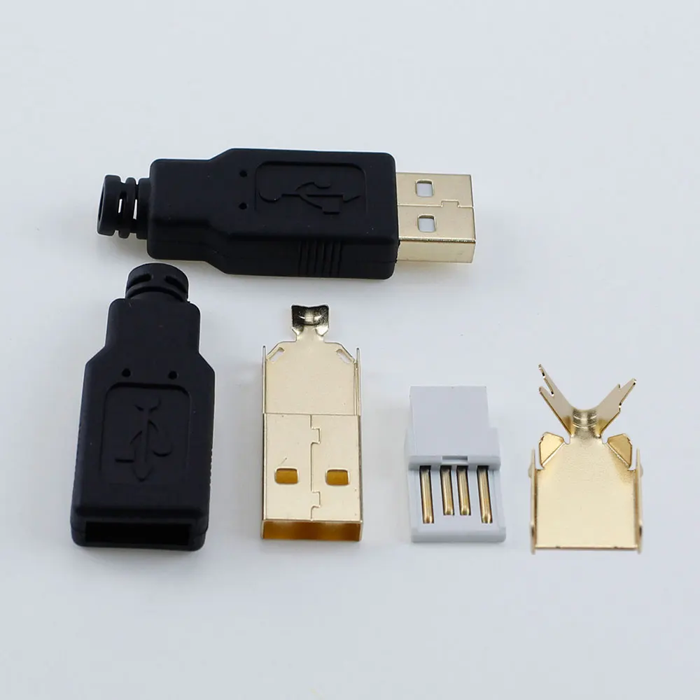 Comprar Conector de enchufe USB tipo A macho chapado en oro, 2 piezas, 4 pines, cable de soldadura DIY, Kits de enchufe de carga USB, cabezal de cuatro piezas