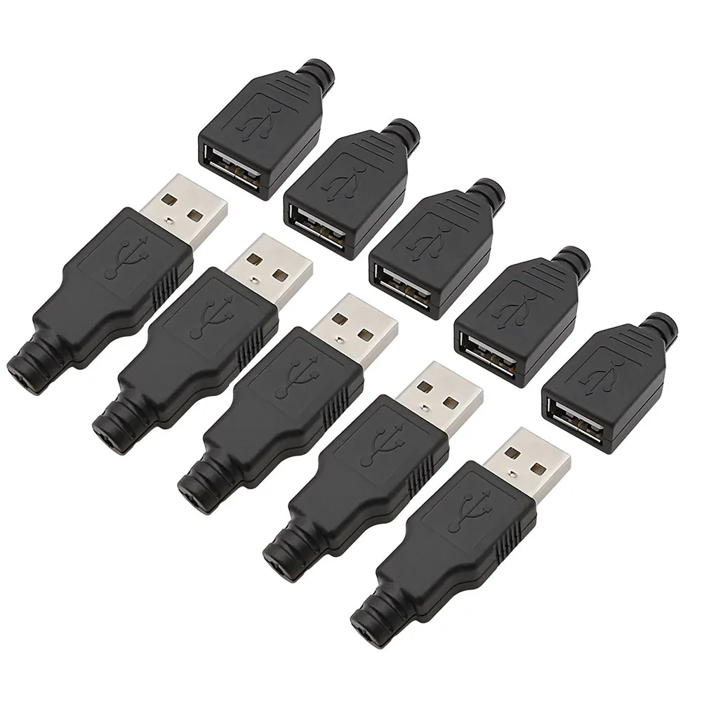 10Pcs Type A Male Female USB 4 Pin Plug Socket Connector With Black Plastic Cover Type-A DIY Kits