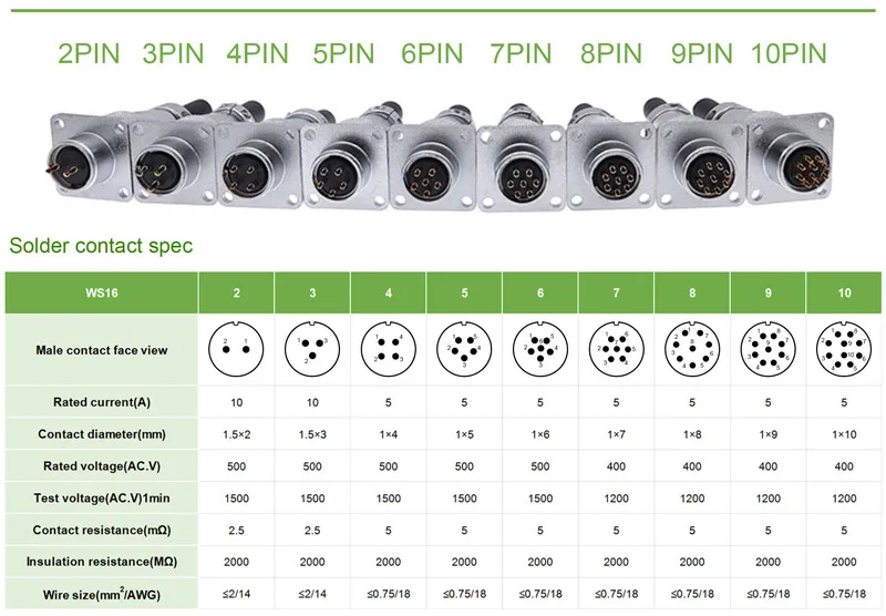 Comprar Conector de enchufe y enchufe WS16, Conector de asiento macho de cabeza hembra de 2 a 10 pines con instalación inversa antifugas