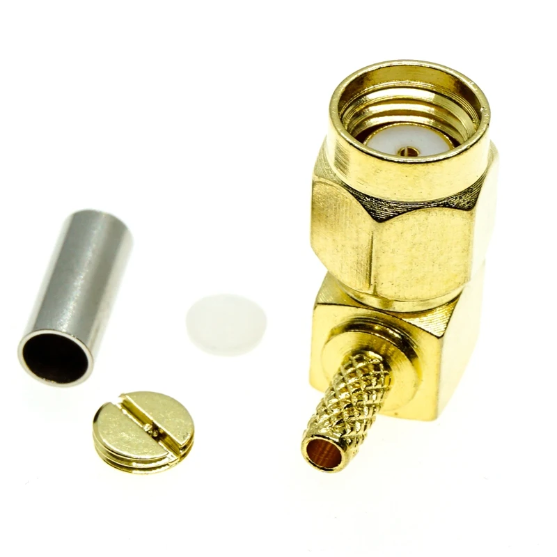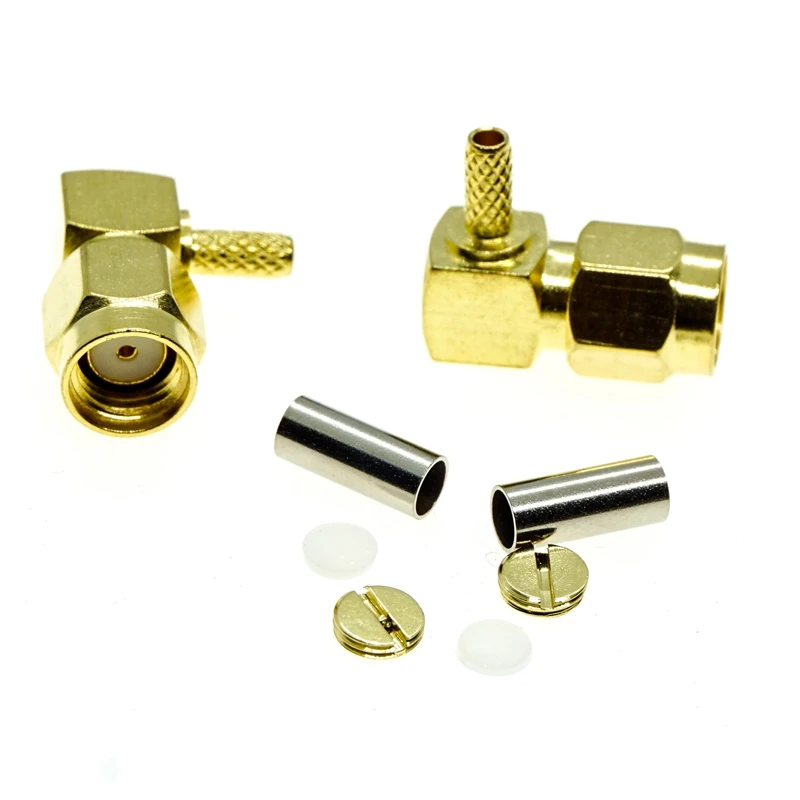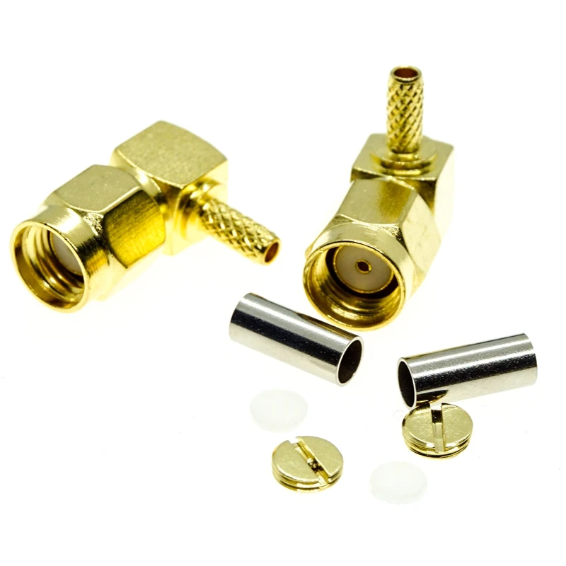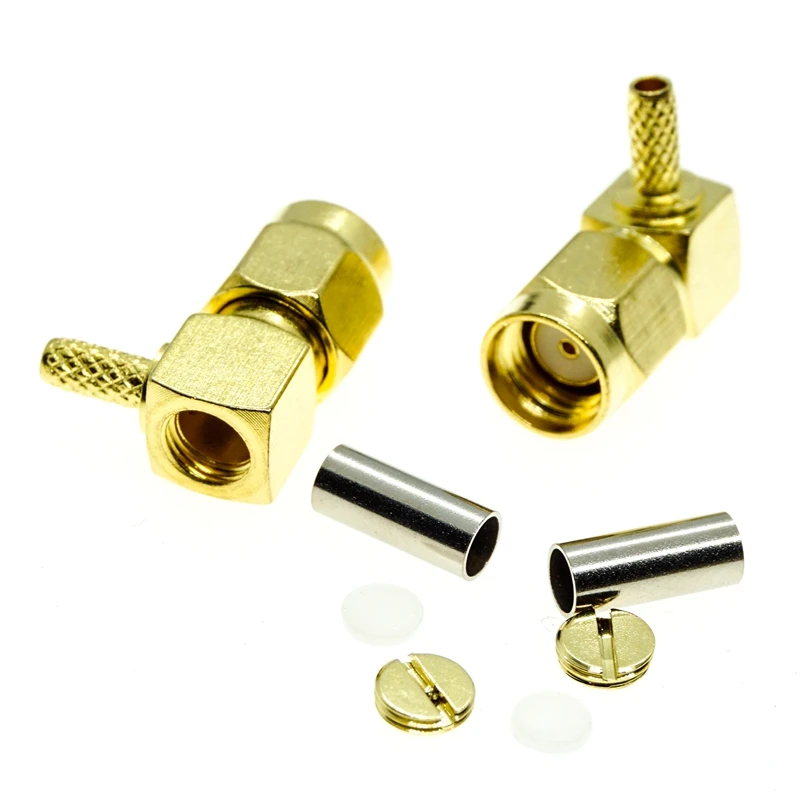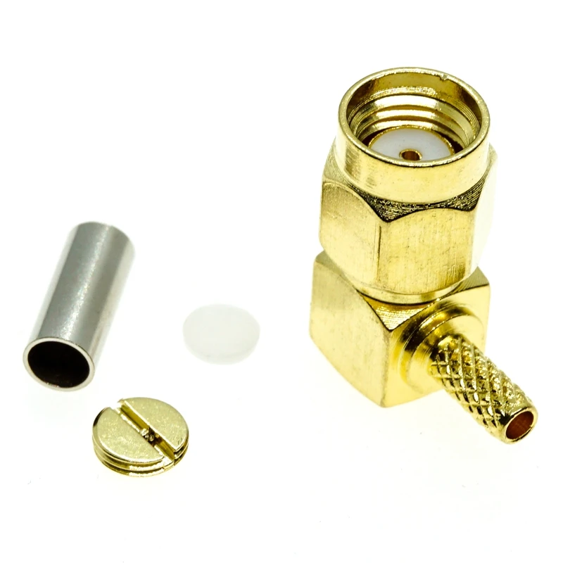Comprar Conector de engarce macho para Cable RG174, RG316, LMR100, ángulo recto de 9 y 0 grados, Pin hembra, RF, RP-SMA
