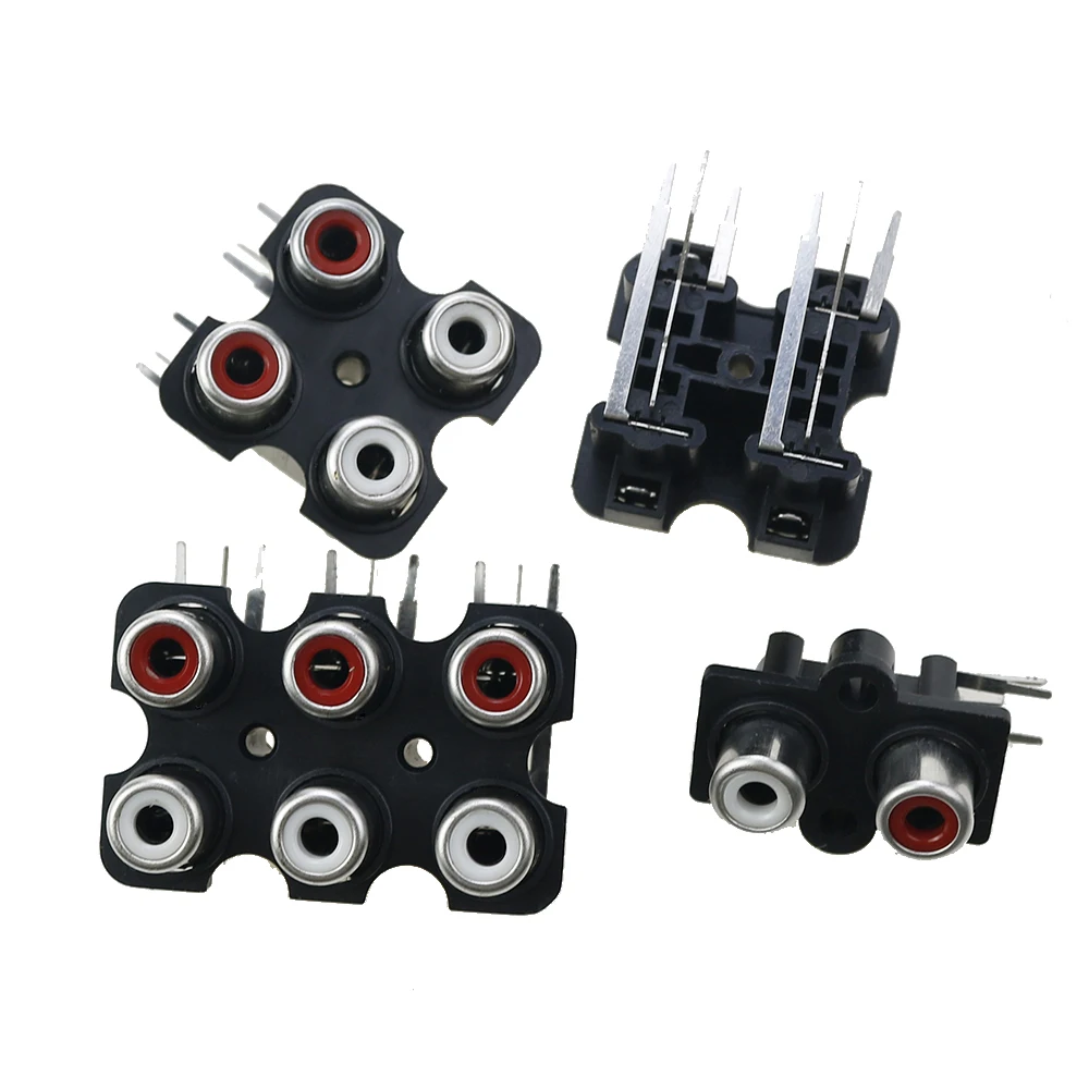 Comprar Conector de entrada de Audio y vídeo AV, conector RCA hembra de 5 piezas, 2 orificios, 4 orificios, 6 orificios, amplificador de fila de loto, interfaz de montaje PCB