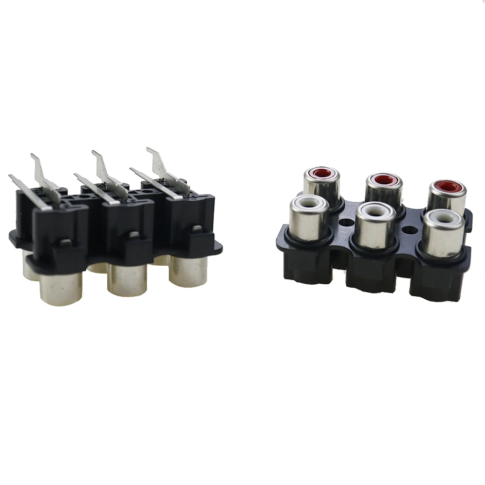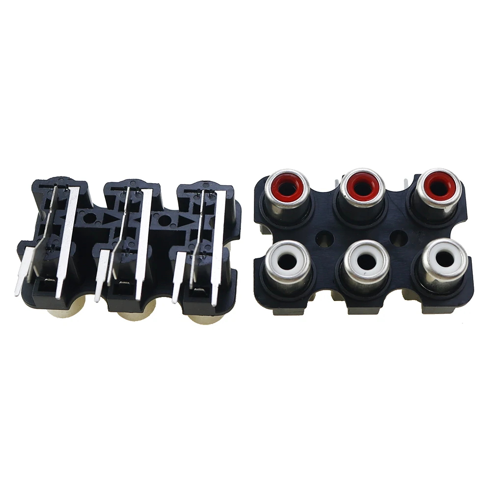 Conector de entrada de audio y vídeo AV hembra RCA de 6 orificios, 2 orificios, 4 orificios, 5 piezas, conector de entrada de fila de loto, interfaz de amplificador, montaje en PCB