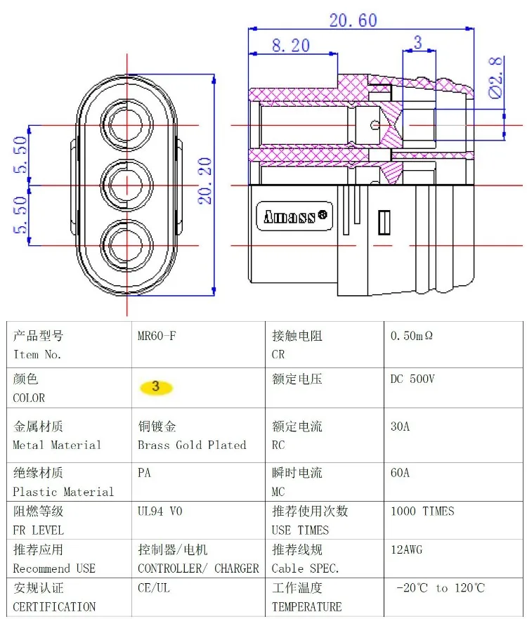 Comprar Conector ESC de enchufe macho hembra MR60 de 10 piezas