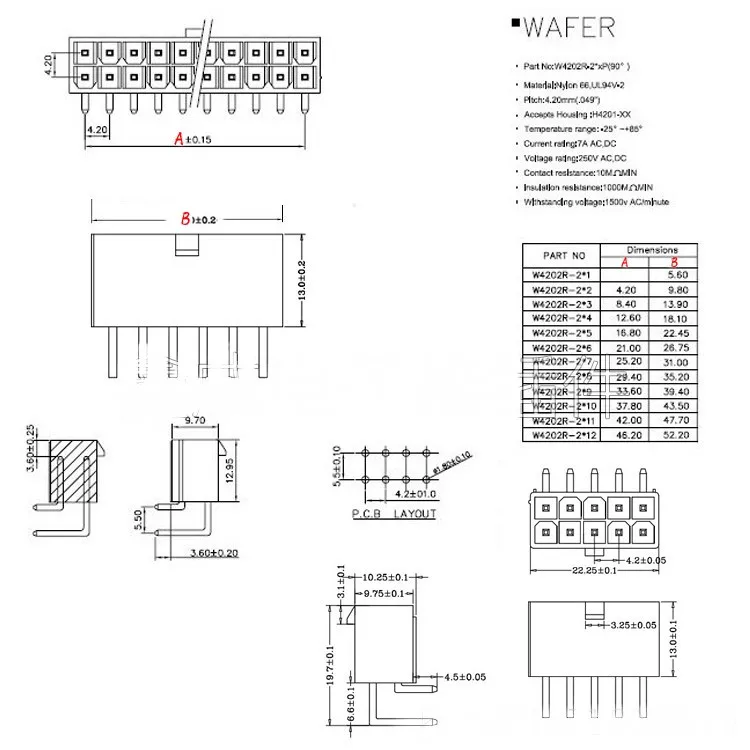 Comprar Conector de espaciado 4,2 de doble fila looper 2p 4P 6p 8p 10p 12p 18p 24p, placa de circuito, base blanca, gran oferta, 5569