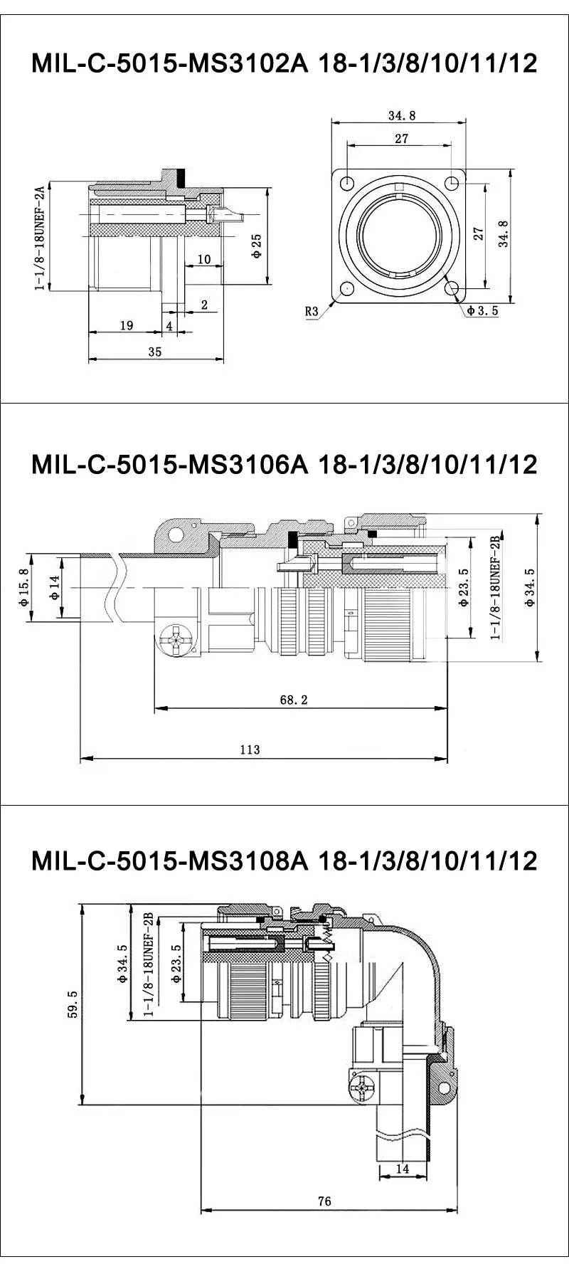 Comprar Conector de especificación militar MS3102A, MIL-C 5015, 18S-12, 18S-8, 18S-1, MS3106A, MS3108A, MIL STD, conectores circulares