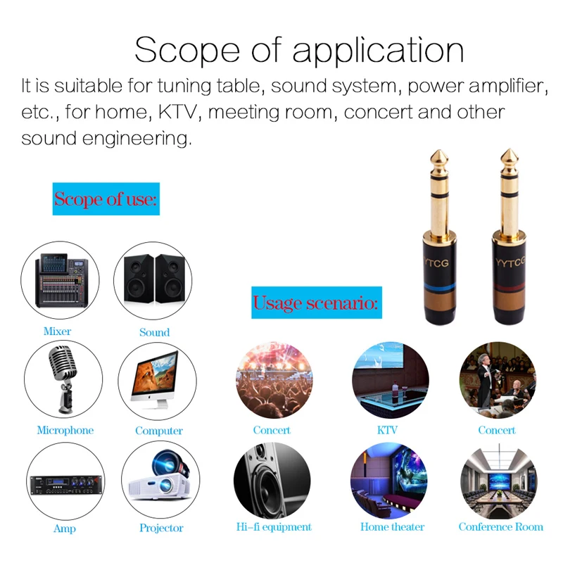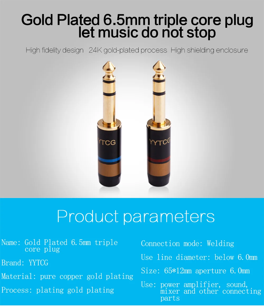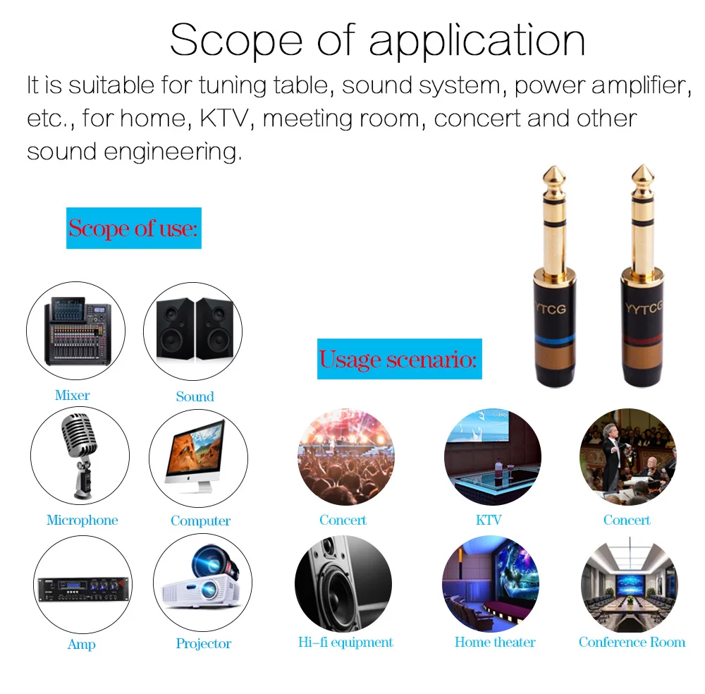 Comprar Conector estéreo de 1 piezas, conector macho de 6,35mm y 6,3mm, Conector de altavoz 6,35, conector de Audio chapado en oro