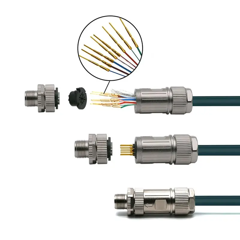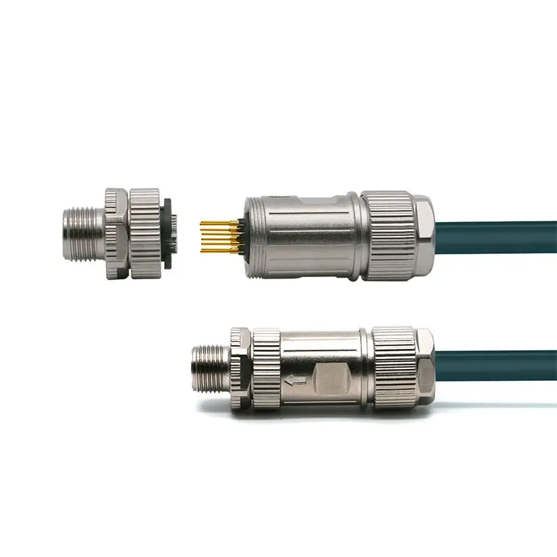 Conector Ethernet M12 a prueba de agua IP67, enchufe de aviación tipo X de 8 pines, conector desmontable de montaje de tipo prensado de soldadura de Metal