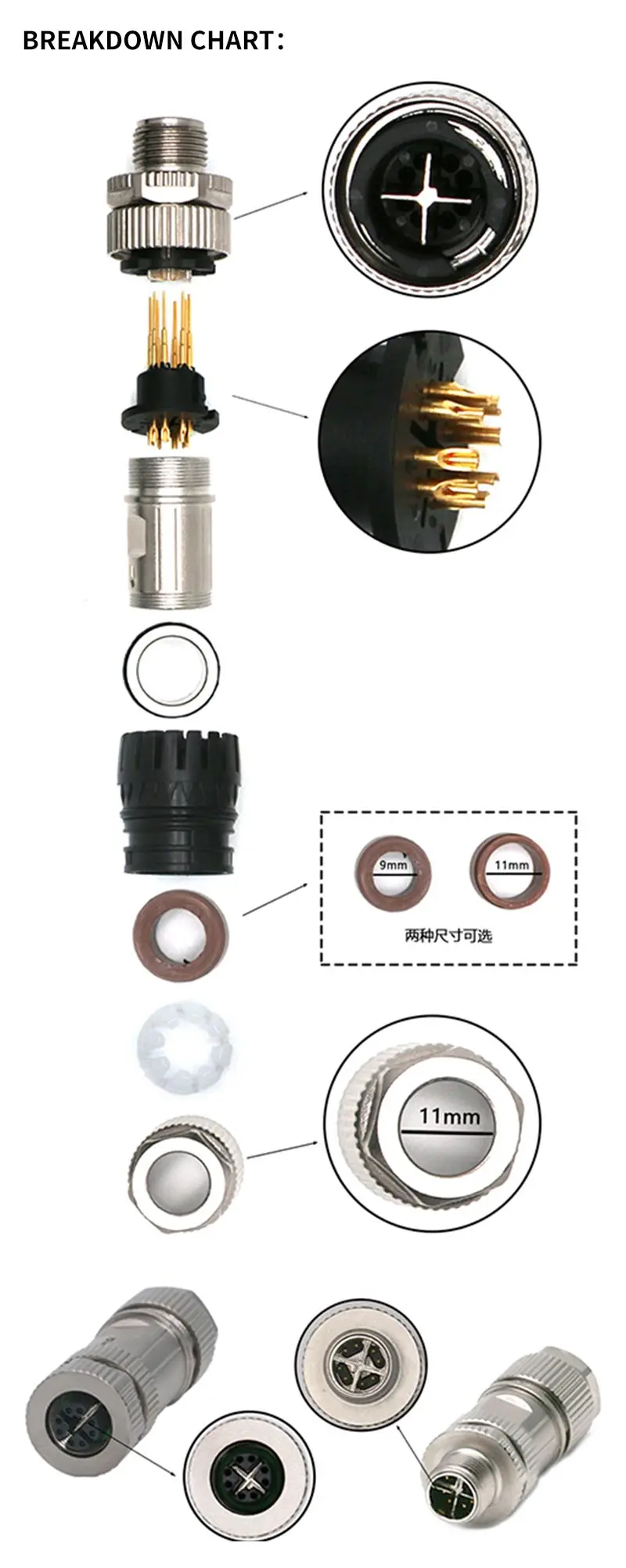 Comprar Conector Ethernet M12 impermeable IP67, Conector de aviación tipo X de 8 pines, todo tipo de soldadura de Metal, Conector de prensado, montaje desmontable