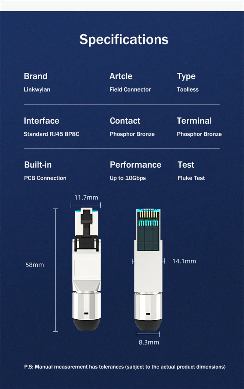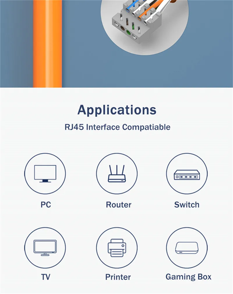 Adecuado para: cable de red de 22-24AWG (diámetro exterior del cable de 6mm a 8mm).