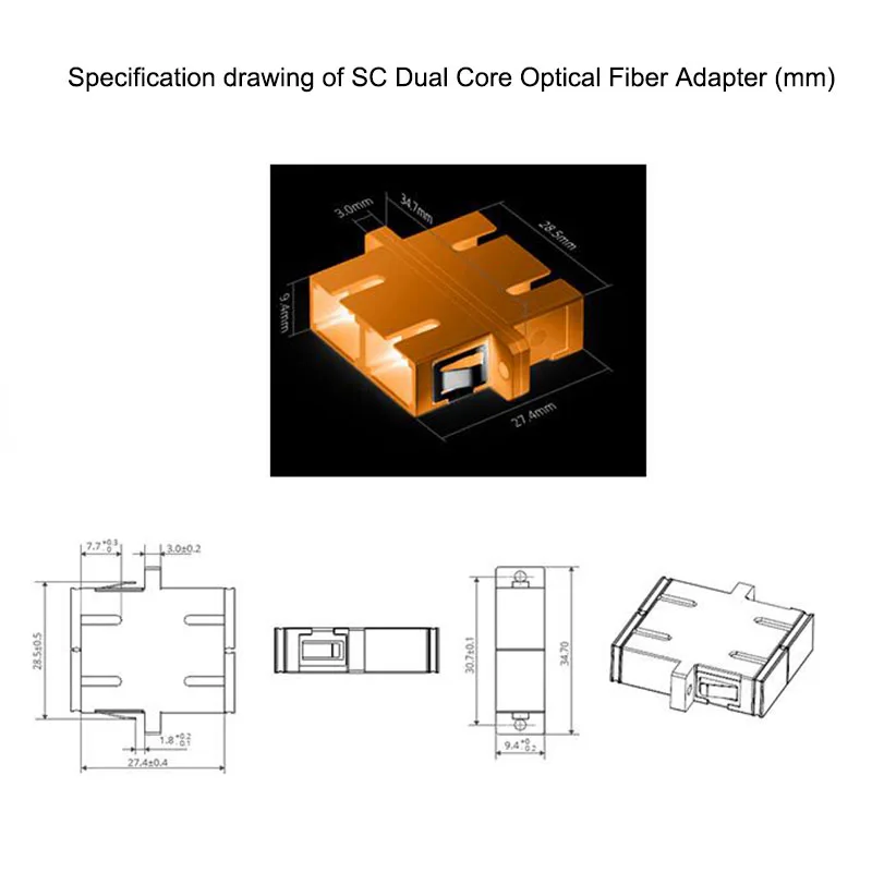 El adaptador de fibra óptica (tipo hembra), también conocido como brida, utiliza la manga para conectar con precisión los dos conectores de fibra óptica de los dos extremos, de modo que la señal óptica se puede transmitir con una pérdida de inserción lo suficientemente pequeña.