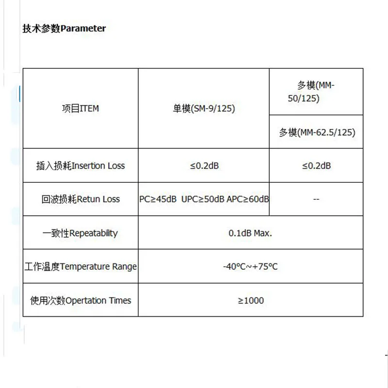 Pérdida de retorno: ≥ 50dB UPC, APC ≥ 60dB