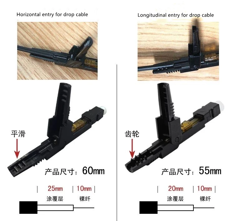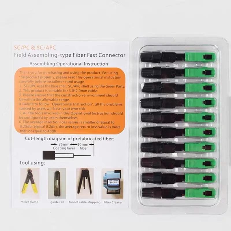 Comprar Conector de fibra óptica rápido SC/APC virola superior IL dentro de 0,3dB SM campo de montaje rápido 55mm 60mm 100 Uds